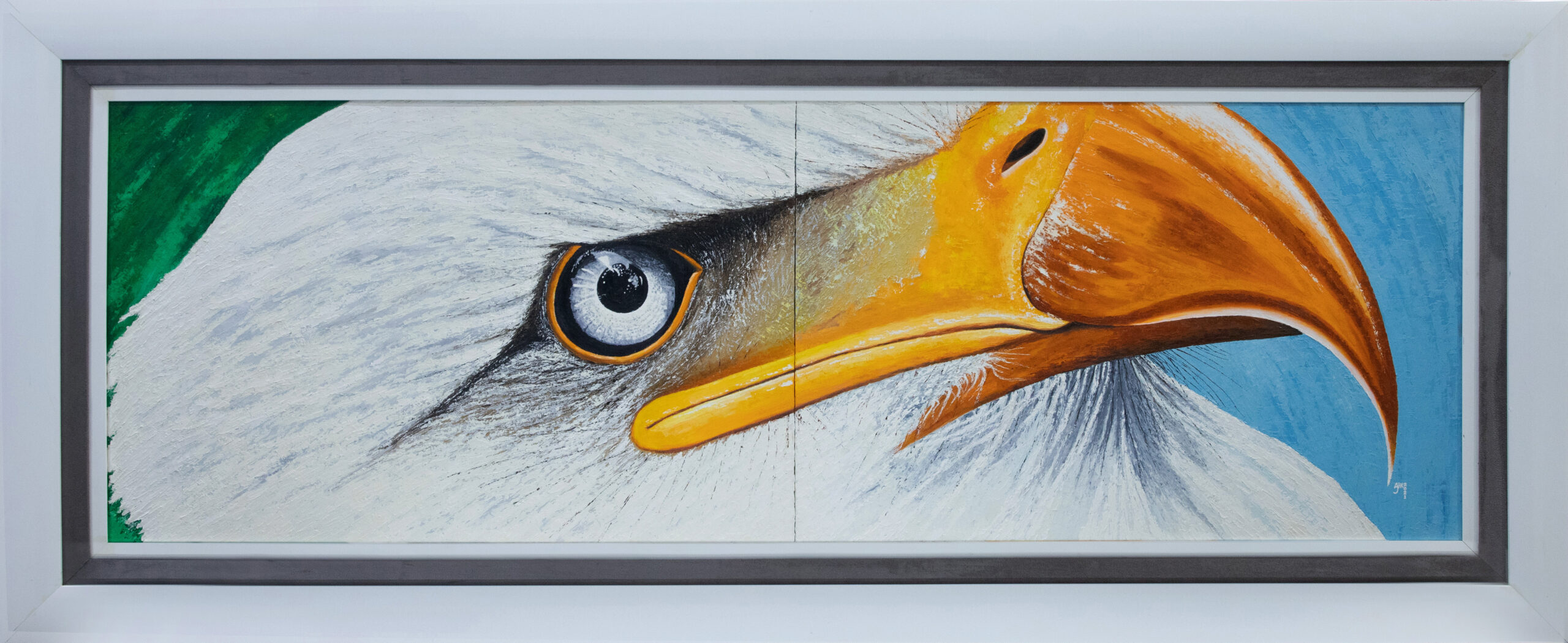 Focus captures the essence of determination and precision through the commanding attention of the eagle. Above the serene blue sky where it flies high, the eagle is surrounded by the vibrant greens of tall towering trees which are its natural habitat. With a sharp yellow pointed beak, the eagle is ready to seize any opportunity. Its gaze is focused and very unyielding on its objectives. The eagle’s intensity shows in its eyes and reflects a spirit that is unafraid to confront life’s challenges. Through Focus, we are once again reminded that success is achieved through unwavering concentration and like the eagle, we have to set clear goals and remain dedicated to our aspirations with utmost clarity