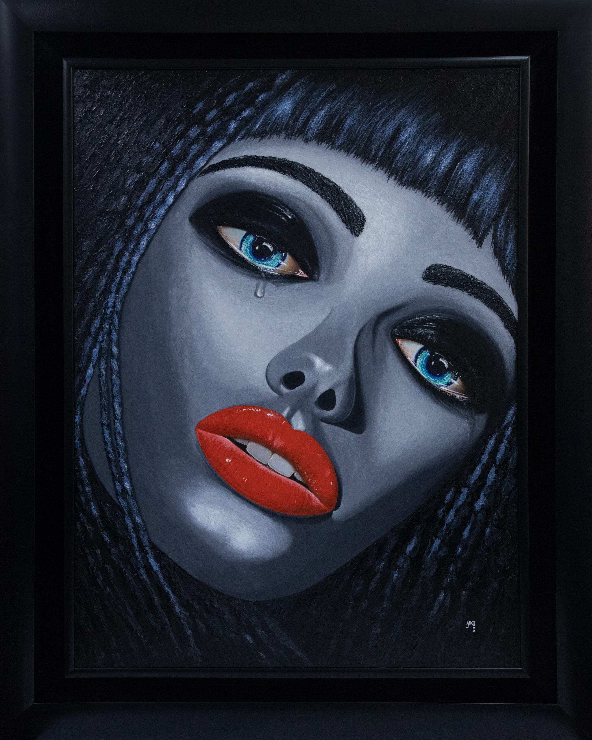 Sometimes the love we feel becomes a bit overwhelming. Spilling over and manifesting as tender tear drops from our eyes. A deep longing and uncontrollable desire that stares with eyes filled with passion reflecting her barest inner feelings. Her lips are sensual red and tenderly she expresses admiration and affection.